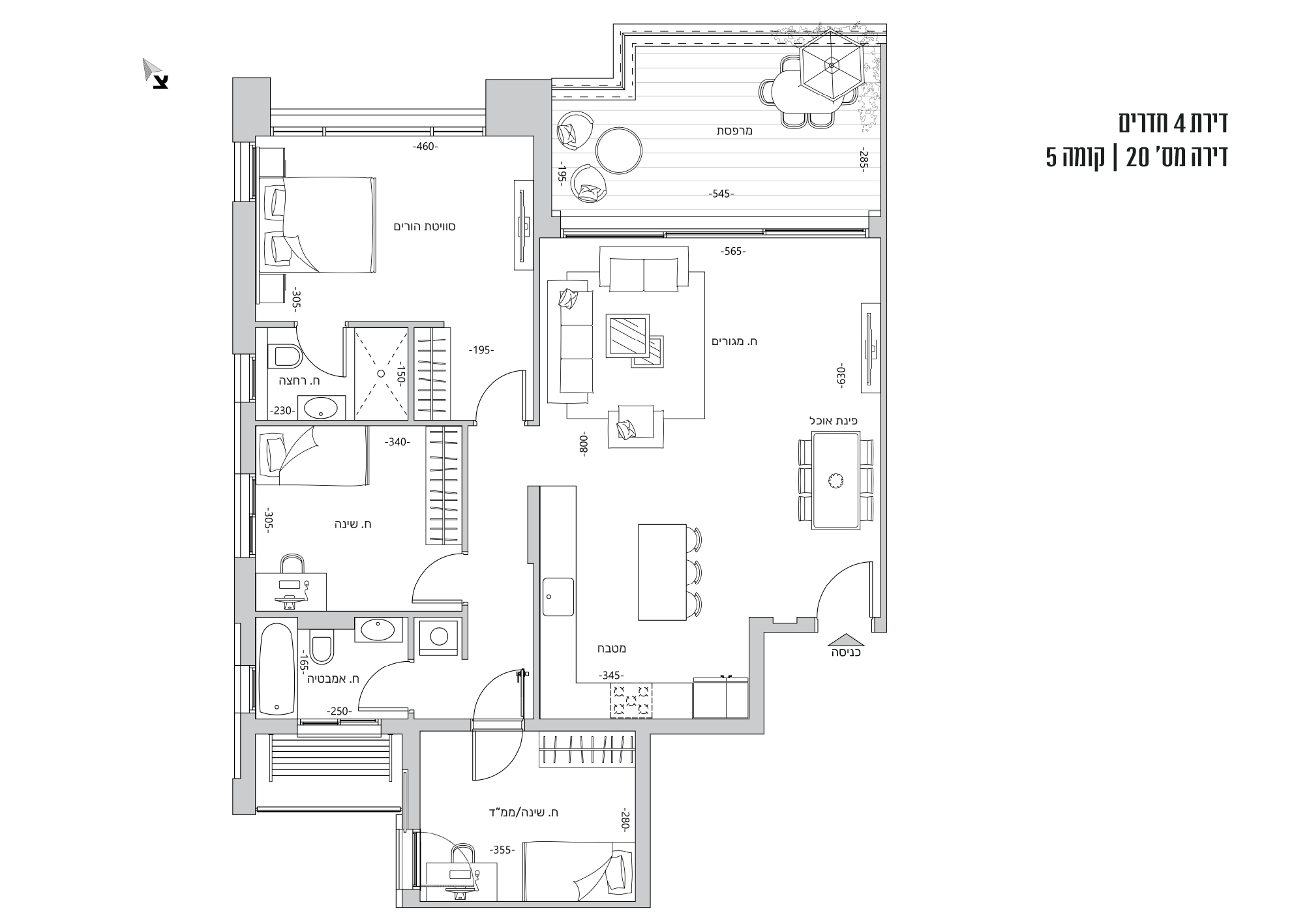 מובהר כי ההדמיות, תוכניות הדירה והמפרט הטכני בחוברת זו, הינם לצורכי המחשה בלבד ואינם מהווים כל מיצג מחייב מצד החברה. את החברה יחייבו חוזה המכר, מפרט המכר והתוכניות עליהן יחתמו החברה והרוכשים. הריהוט המוצג בהדמיות ובתוכניות הינו להמחשה בלבד ואינו חלק ממפרט הדירה. אין להתייחס למידותיו או לצורתו אלא רק למה שמופיע במפרט המכר שעליו חתום הרוכש לצורך הזמנת ריהוט קבוע המשולב בחדרים. את החברה תחייב אך ורק תוכנית המכר אשר תיחתם בחוזה. ט.ל.ח.